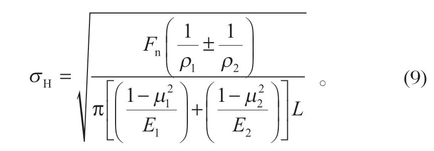 Hertz 接觸理論是研究疲勞、摩擦及任何有接觸體相互作用的基本理論。在齒輪嚙合過(guò)程中,將齒輪的接觸問(wèn)題等效為兩圓柱面的接觸問(wèn)題。赫茲接觸應(yīng)力
